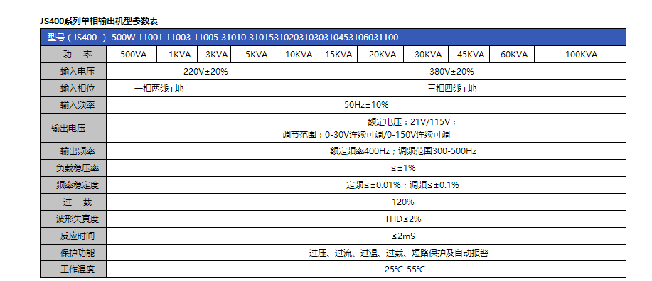 具備400Hz電源所有特點(diǎn)